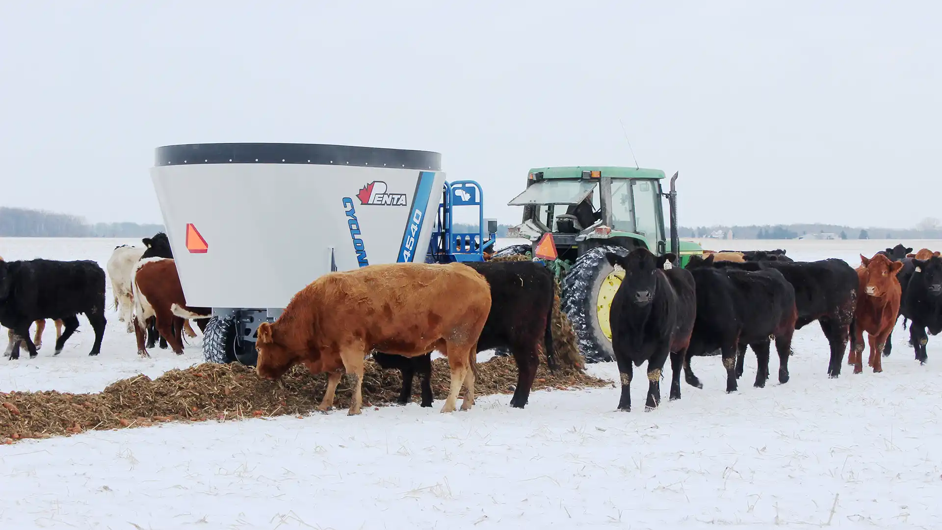 Penta TMR Mixers feature our patented Cyclone Auger, which accelerates material flow and mix consistency while reducing processing time. They’re built with heavy-duty steel construction, planetary gearboxes, and deep-serrated knives to handle even the toughest forages.