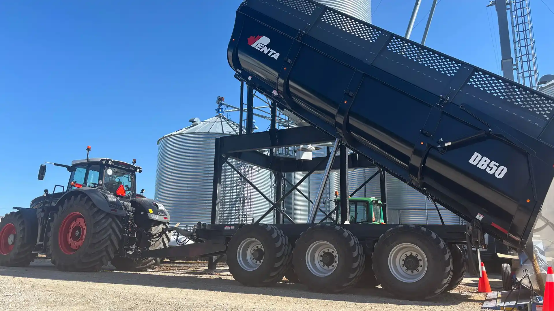 Hydraulic front gate, wide tapered tubs, and front visibility allow seamless loading behind harvesters